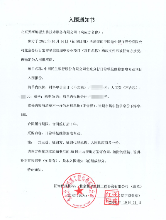 此次成功中标入围,是民生银行对天河地塬技术实力、服务水平和企业信誉的高度认可。天河地塬将始终以严谨的态度和专业的服务,与民生银行共筑金融安全新防线。